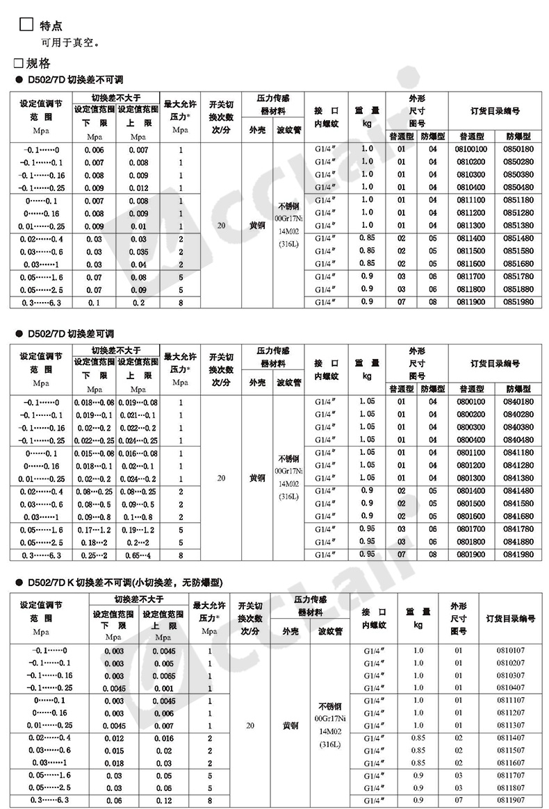 0810108,0811508,08102080811108,0811208,0811308,0811408, ,0811608,0810308,0811708,0810408,0811808,壓力控制器 D502/7DZ切換差不可調(diào)