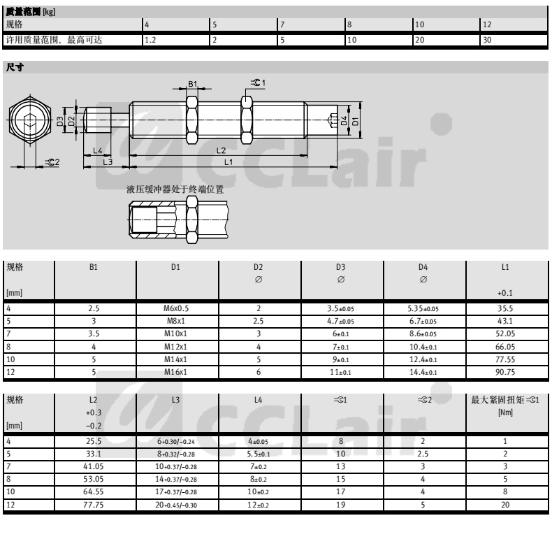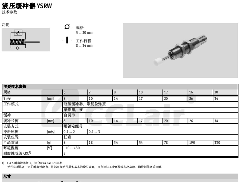 YSRW5-8,YSRW7-10,YSRW8-14,YSRW10-17,YSRW12-20,YSRW16-26, YSRW20-34,油壓緩沖器YSRW