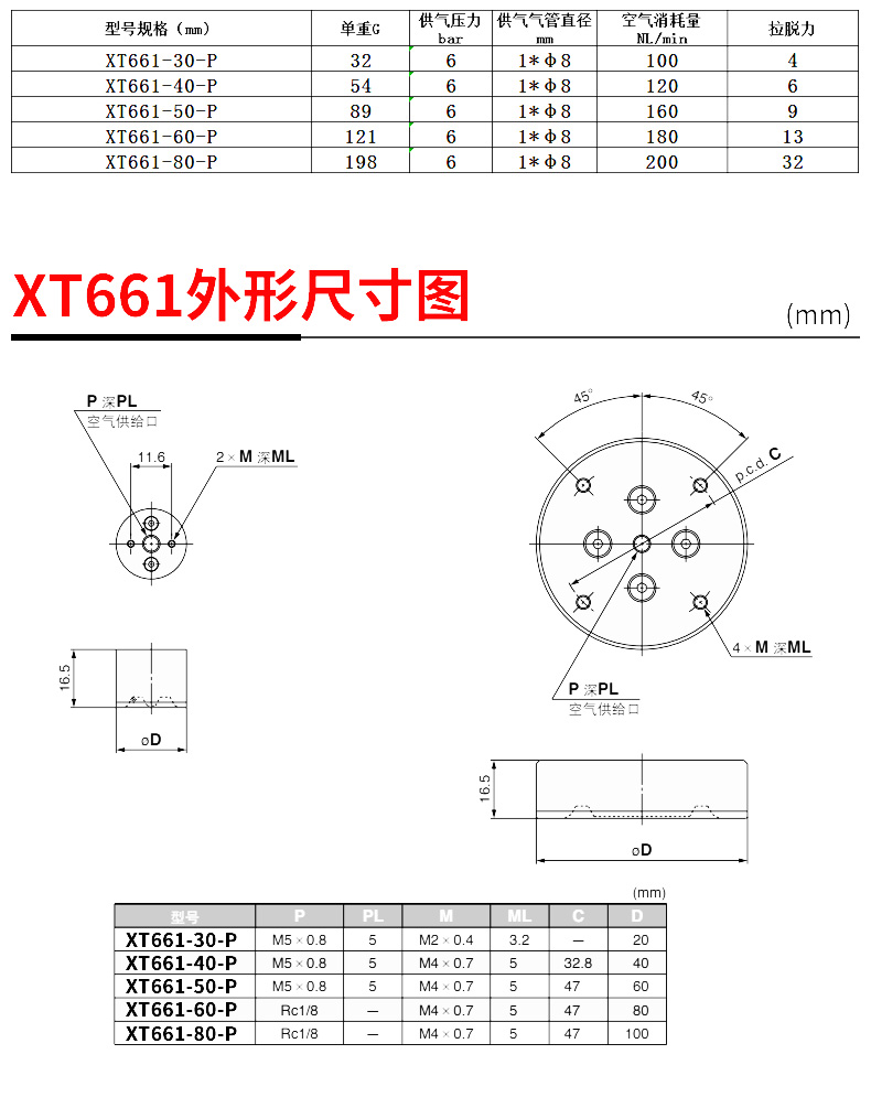 XT661-30-P,XT661-40-P,XT661-50-P,XT661-60-P,XT661-80-P真空吸盤