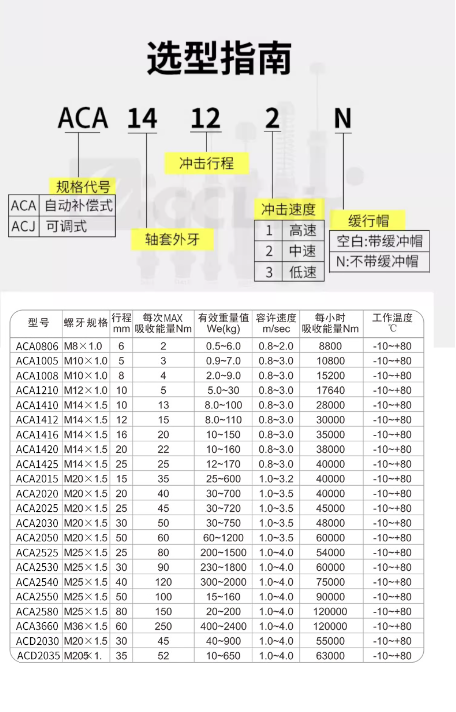 ACA0604-2,ACA0805-2,ACA0806-2,ACA1005-2,ACA1006-2,ACA1007-2,ACA1008-2,ACA1210-2,ACA1215-2,ACA1410-2,ACA141-2,ACA1415-2,ACA1416-2,ACA1420-2,ACA1425-2,ACA1612-2,ACA1616-2,ACA1620-2,ACA1625-2,ACA2015-2,ACA2016-2,ACA2020-2,ACA2025-2,ACA2030-2緩沖器