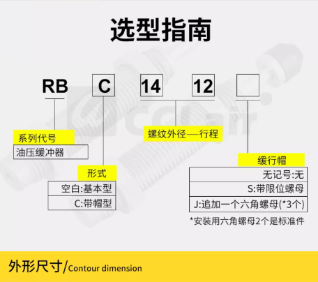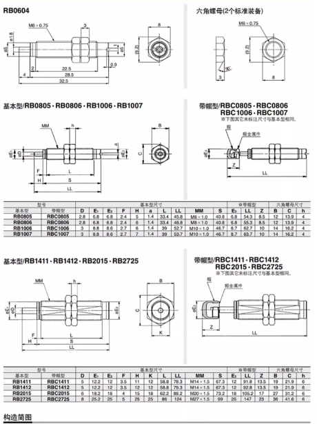 RB0604,RB0805,RB0806,RB1006,RB1007,RB1210,RB1411,RB1412,RB2015,RB2525,RB2725油壓緩沖器