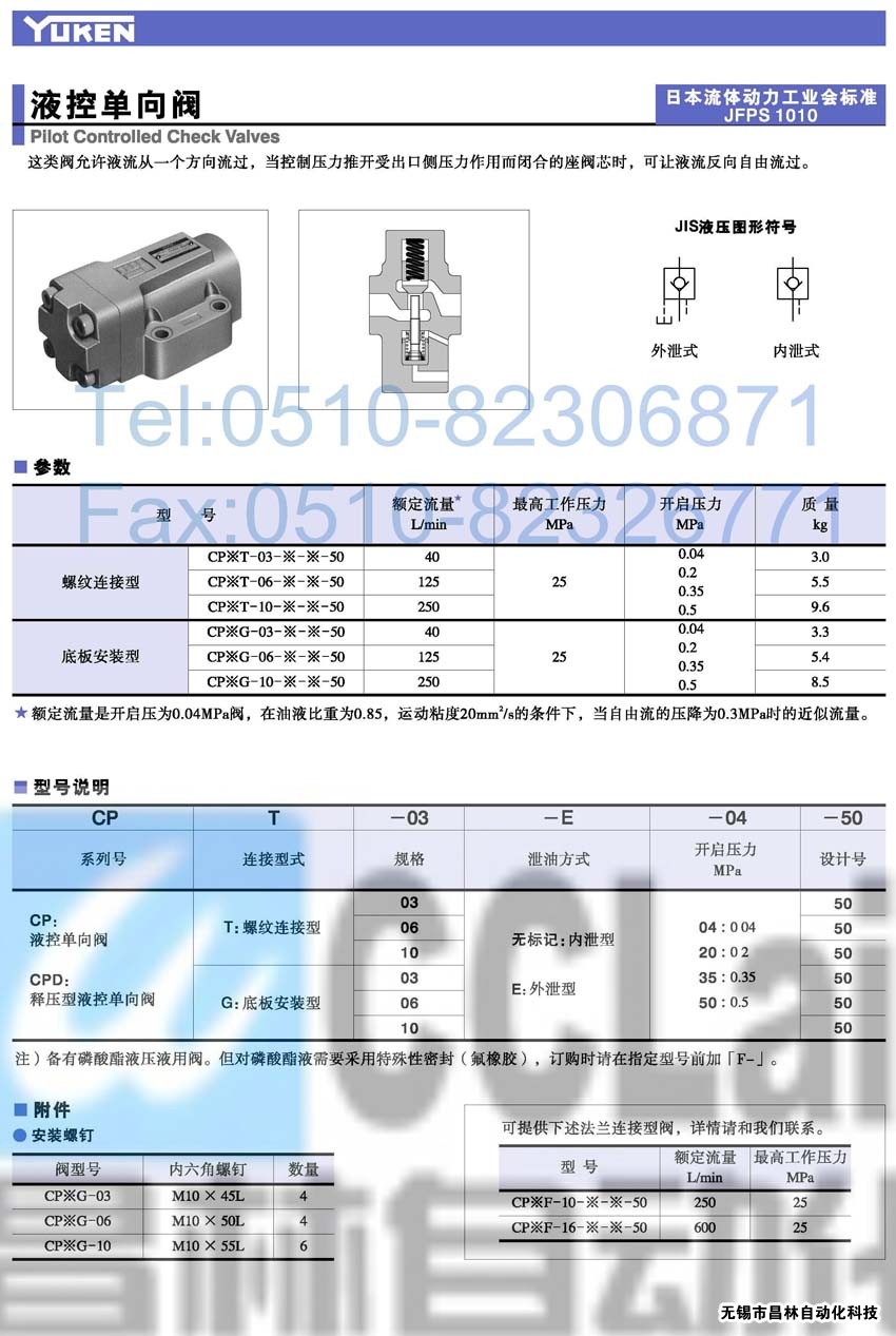 CPDG-10-E-04-50,CPDG-10-E-20-50,CPDG-10-E-35-50,液控單向閥,榆次油研液控單向閥,YUKEN液控單向閥