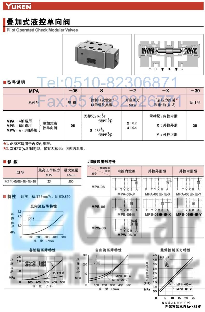 MPA-06S-2-X-30,MPA-06S-2-Y-30,疊加式液控單向閥,榆次油研疊加式液控單向閥,YUKEN疊加式液控單向閥