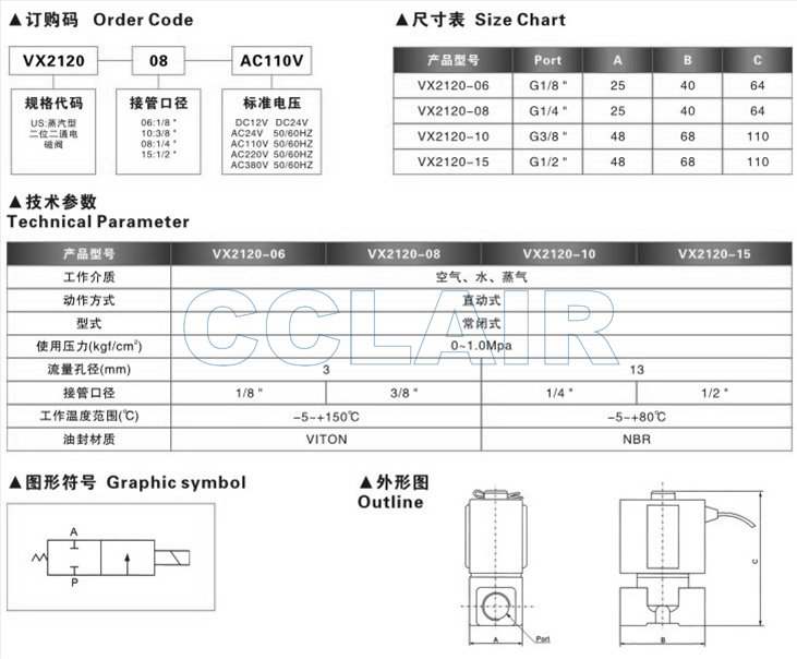 VX2120-06,VX2120-08,VX2120-10,VX2120-15,二位二通電磁閥