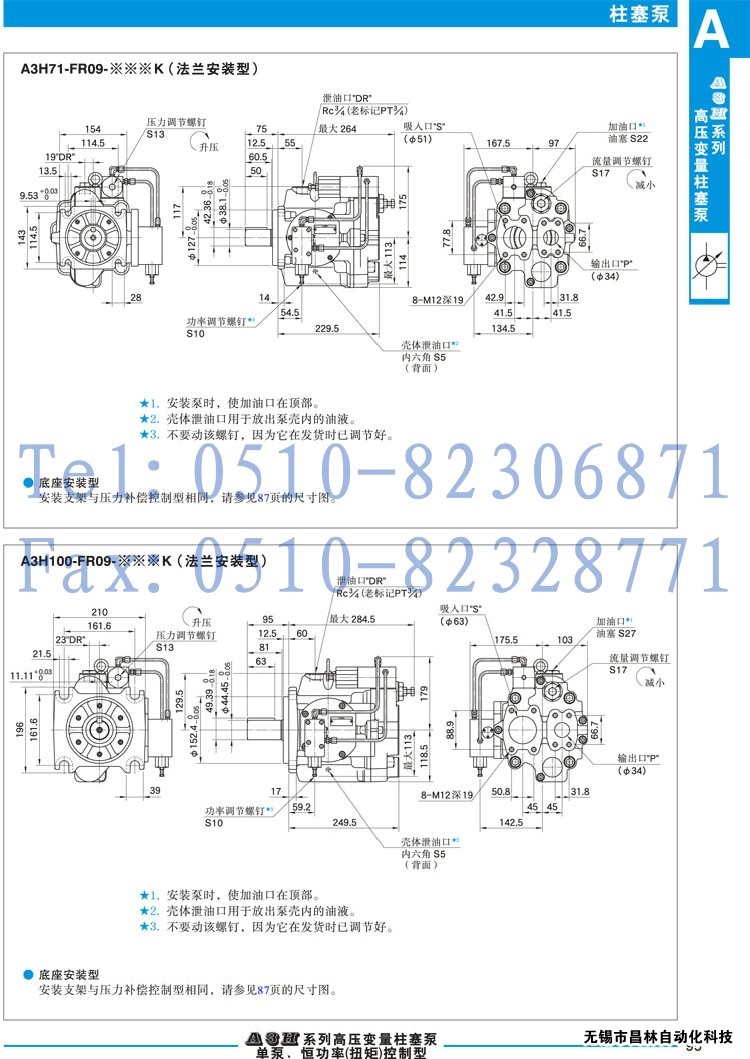 A3H100-FR09-22A4K-10,A3H56-LR09-18.5A4K-10,A3H56-FR09-22A4K-10,高壓變量柱塞泵