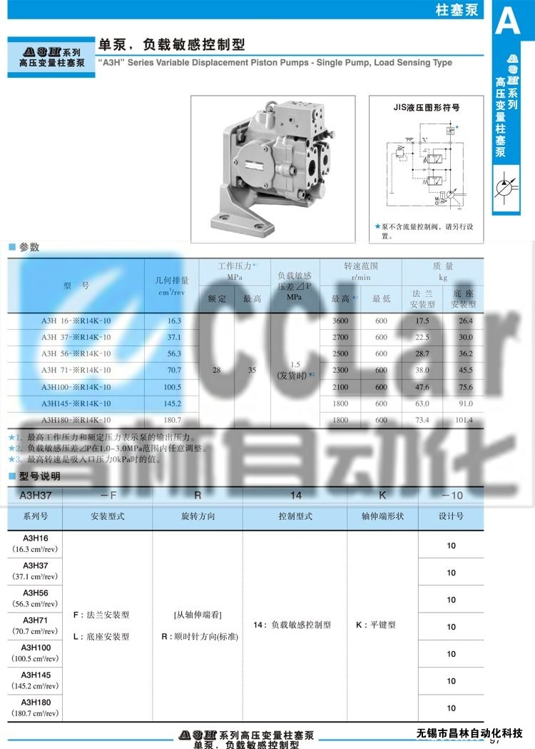 A3H100-FR14K-10,A3H100-LR14K-10,A3H145-FR14K-10,A3H145-LR14K-10,高壓變量柱塞泵