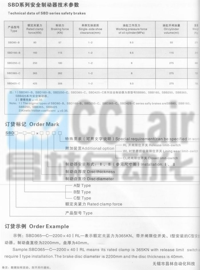 SBD250-C,SBD365-C,SBD425-C,液壓安全制動器