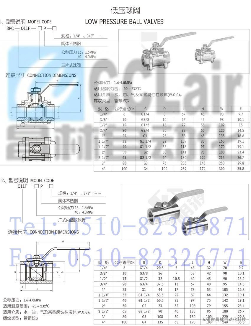 3PC-Q11F-16P-2 1/2",3PC-Q11F-16P-3",3PC-Q11F-16P-4",3PC-Q11F-40P-1/4",