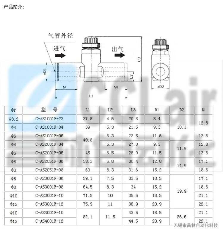 C-AS3001F-06,C-AS3001F-08,C-AS3001F-10,C-AS3001F-12,管道型(速度控制閥),