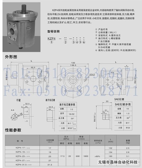 KZP4-23-ALSL,KZP4-23-ALSR,KZP4-23-AFPL,KZP4-23-AFPR,齒輪泵