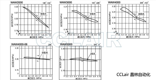 壓力特征曲線 (進(jìn)口壓力P1=0.7MPa 出口壓力P2=0.2MPa 流量Q=20NW/min(ANR))