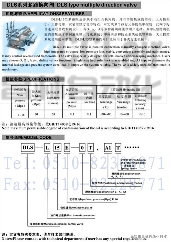 DLS-L15E-OT,DLS-L15E-AT,DLS-L15E-A1T,多路換向閥,生產(chǎn)廠家,價格