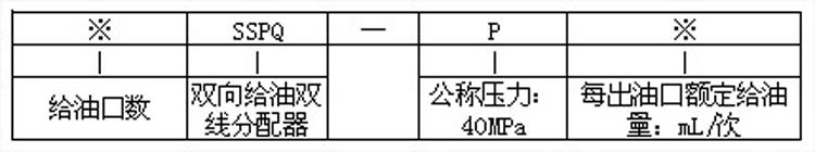 SSPQ-P1.15(VSN-KR)系列雙線(xiàn)分配器適用于分稱(chēng)壓力為40MPa的干油或稀油雙線(xiàn)式集中潤(rùn)滑系統(tǒng)中。