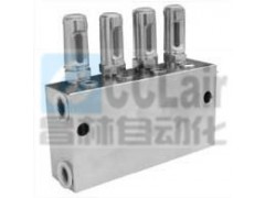 該系列雙線分配器給油口都在底部,分配器活塞正反向動作均從同一給油口排出潤滑脂,還可以從指示桿的動作直接觀察分配器的工作情況,同時還可通過調整螺釘在規(guī)定范圍內方便地調整各個給油口的給油量。