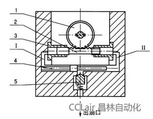 5、將換向閥換向,卸除管路II壓力,為下一個循環(huán)準備。