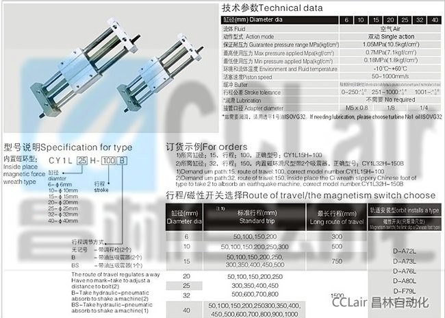 CY1L40H-700,CY1L40H-800,CY1L40H-900,CY1L40H-1000,CY1L40H-1500,無桿氣缸