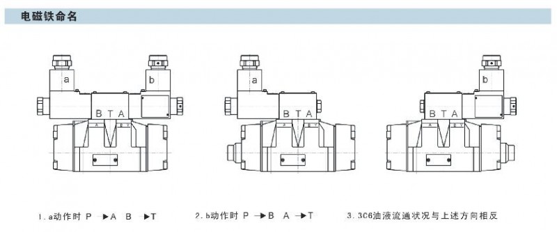 二、技術(shù)參數(shù):規(guī)格 06 10 最高工作壓力 (MPa) 31.5 最大流量 (L/min) 220 430 工作介質(zhì) 礦物質(zhì)液壓油;磷酸脂 介質(zhì)油溫范圍 (℃) -20~70 介質(zhì)粘度范圍 (mm2/s) 2.8~380 開啟壓力 (MPa) a:0.05 b:0.4 工作電壓 (V) 直流 24 *交流 127, 220 防護(hù)等級 IP55