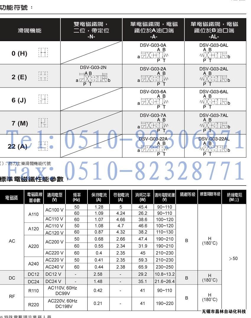 DSV-G03-11A,DSV-G03-11AL,DSV-G03-11B,DSV-G03-11BL,DSV-G03-11C,濕式電磁鐵操作換向閥