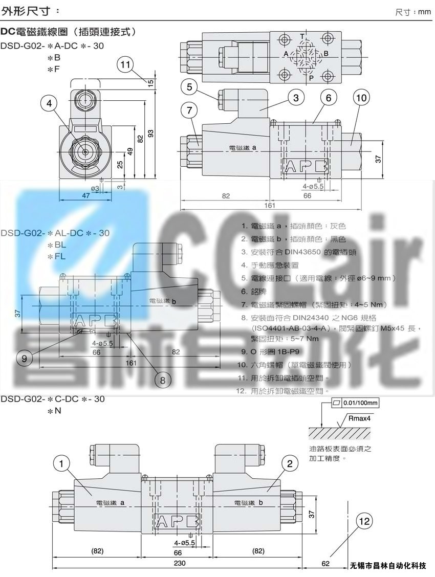 DSV-GO2-5N,DSV-GO2-6N,DSV-GO2-7N,DSV-GO2-8N,DSV-GO2-11N,DSV-GO2-22N,濕式電磁鐵操作換向閥