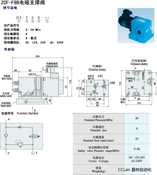 ZCF-F8B電磁支撐閥是由泄漏量極少的二位二通換向閥與安全閥、單向閥、節(jié)流閥高度集成的組合閥。它體積小,重量輕,結(jié)構(gòu)緊湊,性能先進(jìn), 功能齊全, 使用方便,維護(hù)簡(jiǎn)單,即使長(zhǎng)時(shí)間支撐負(fù)載亦不會(huì)下沉,因而安全可靠。下降操作時(shí),僅電磁鐵通電即可,不必啟動(dòng)油泵。意外斷電時(shí),可推動(dòng)磁鐵端的手動(dòng)桿使油缸下降。它與單作用油缸和油泵一起即可構(gòu)成用途廣泛的升降平臺(tái)液壓系統(tǒng),廣泛應(yīng)用于倉(cāng)庫(kù)、碼頭等貨物堆垛,現(xiàn)代化劇場(chǎng)的活動(dòng)舞臺(tái)升降系統(tǒng),油壓式升降電梯等。