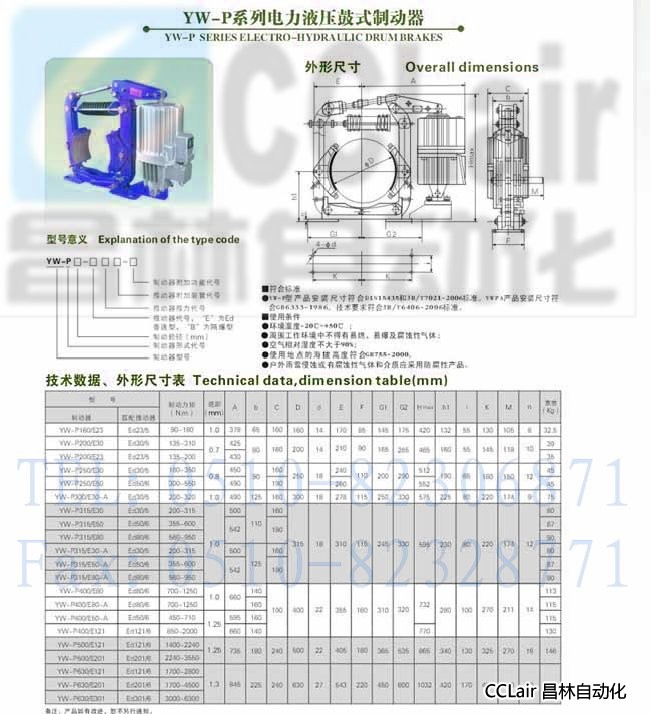 YW-P400/E121,YW-P500/E121,YW-P400/E201,電力液壓鼓式制動器