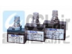 | 單向型流量控制閥,在氣路中調(diào)節(jié)壓縮空氣的流量,氣源正向流動時節(jié)流,反向流動時不發(fā)生節(jié)流,以改變氣缸等執(zhí)行元件的單向運動速度。 |