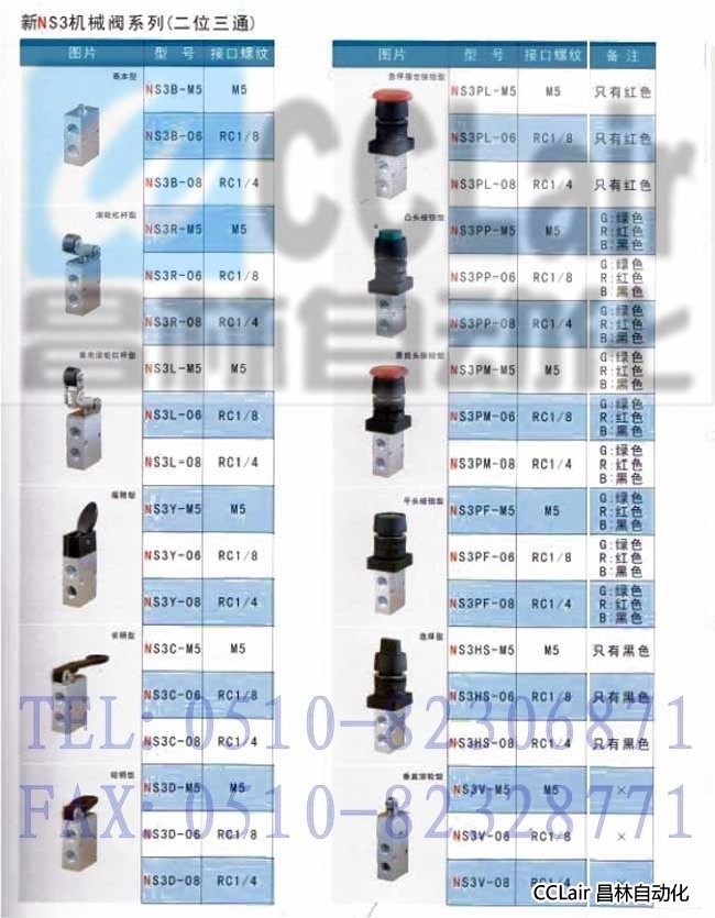 NS3C-M5,NS3C-06,NS3C-08,NS3D-M5,NS3D-06,NS3D-08,二位三通機(jī)械閥,