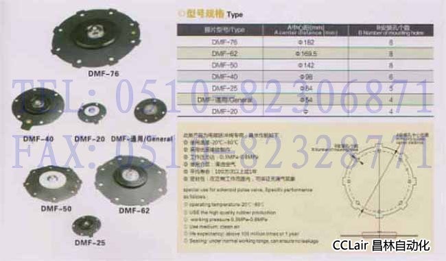 DMF-20 ,DMF-25, DMF-40, DMF-50, DMF-62, DMF-76, 脈沖閥膜片