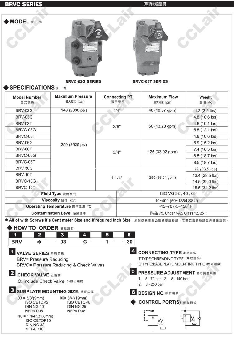 BRV-02,BRV-03,BRV-06,BRVC-03,BRVC-06,BRV-10T-1-30,BRV-06G-1-30,BRVC-03T-1-30,單向減壓閥