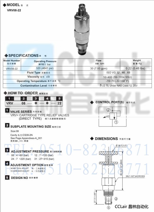 VRV08-22,插入式調(diào)壓閥