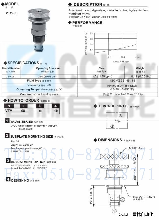 VTV-08,插入式節(jié)流閥,