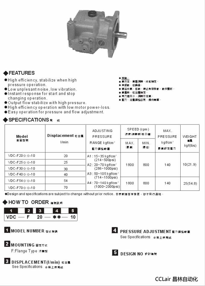 VDC-F30-A1-10,VDC-F30-A2-10,VDC-F30-A3-10,VDC-F30-A4-10,中壓變量葉片泵
