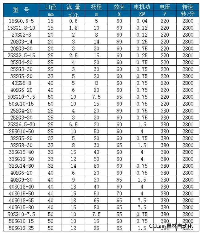 型號: 25SG2.5-15 ,25SG4-20 ,25SG3-30,32SG5-20,40SG5-8,
