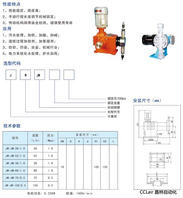 JW-JM-75/0.5,JW-JM-150/0.5,JW-JM-60/1.0,機(jī)械隔膜計(jì)量泵