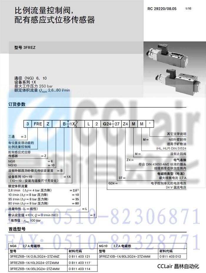 3FREZ6B-1X/35L2G24-27Z4MM,3FREZ6B-1X/80L2G24-27Z4MM,比例流量控制閥,力士樂REXROTH,德國力士樂 |