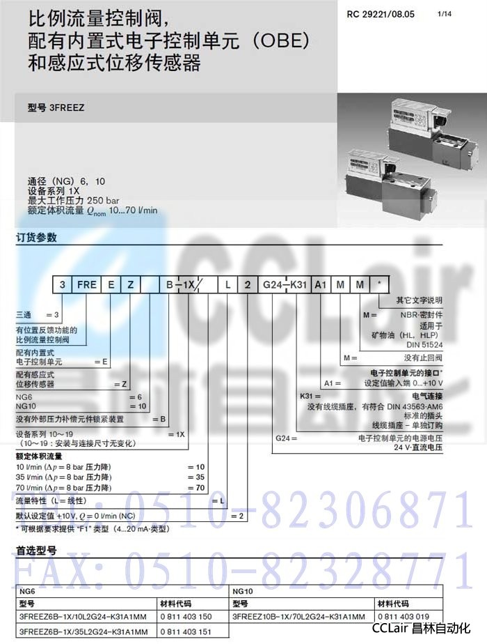 3FREEZ6B-1X/35L2G24-K31A1MM,3FREEZ6B-1X/70L2G24-K31A1MM,,比例流量控制閥,力士樂REXROTH,德國(guó)力士樂