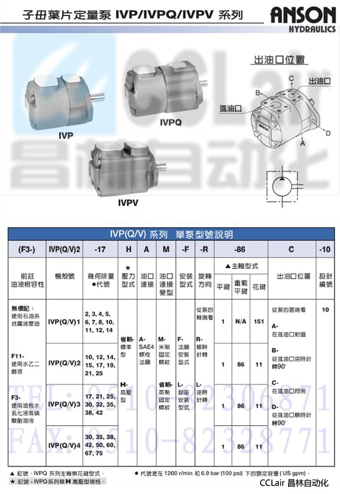 IVPV3-17-F-R-1C-10,IVPV3-21-F-R-1C-10,IVPV3-25-F-R-1C-10,IVPV3-30-F-R-1C-10,子母葉片泵(單泵)