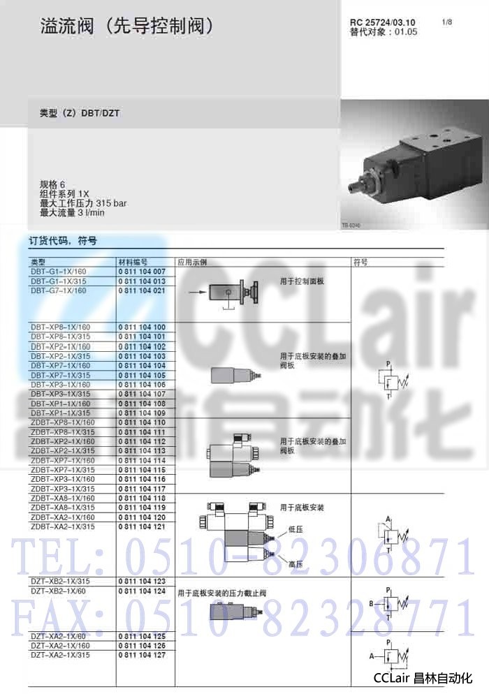 0811104013 DBT-G1-1X/315,0811104103 ZDBT-XP2-1X/315,直動式溢流閥,力士樂REXROTH,德國力士樂 |