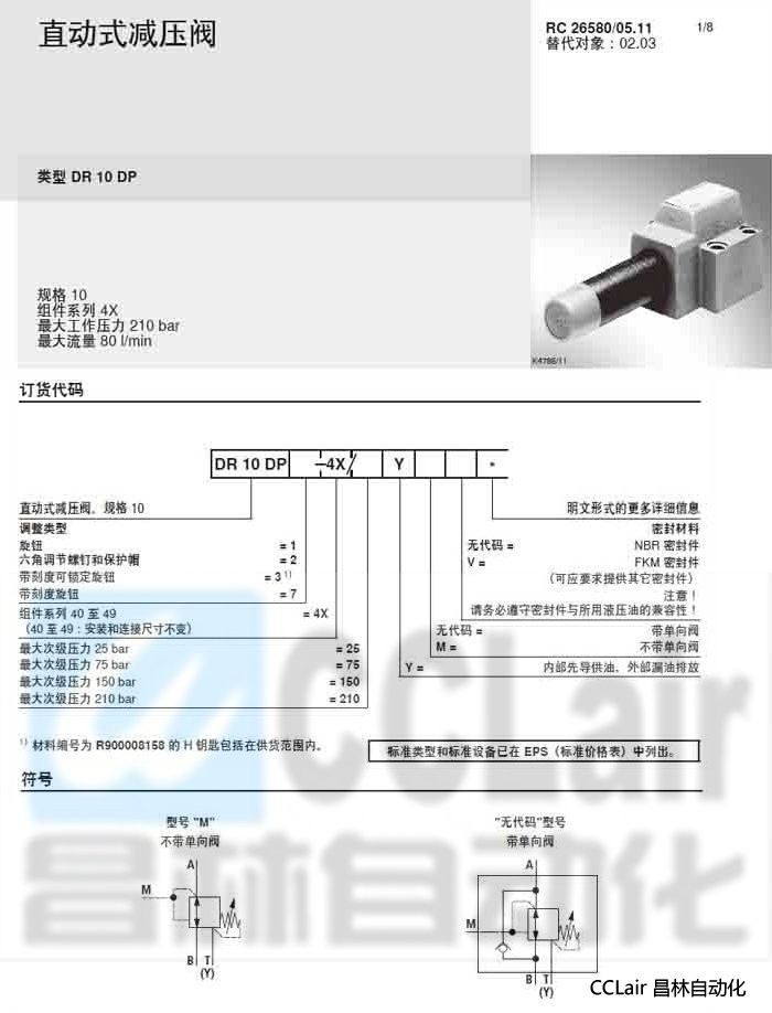DR10DP2-4X/75YM,DR10DP2-4X/75YMV,DR10DP2-4X/75Y ,直動式減壓閥,力士樂REXROTH,德國力士樂 |