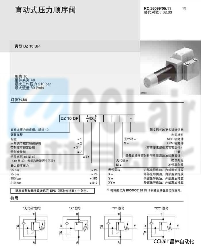 DZ10DP2-4X/150X,DZ10DP2-4X/150XM,DZ10DP2-4X/150Y,直動式壓力順序閥,力士樂REXROTH,德國力士樂
