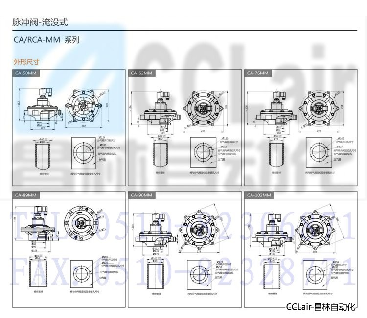 CA/RCA25MM,CA/RCA40MM,CA/RCA50MM,淹沒式脈沖閥