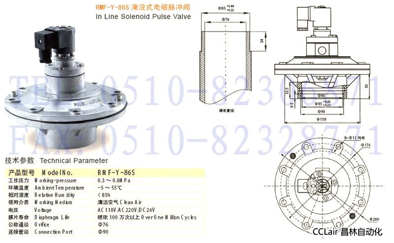 RMF-Y-86S,淹沒式電磁脈沖閥