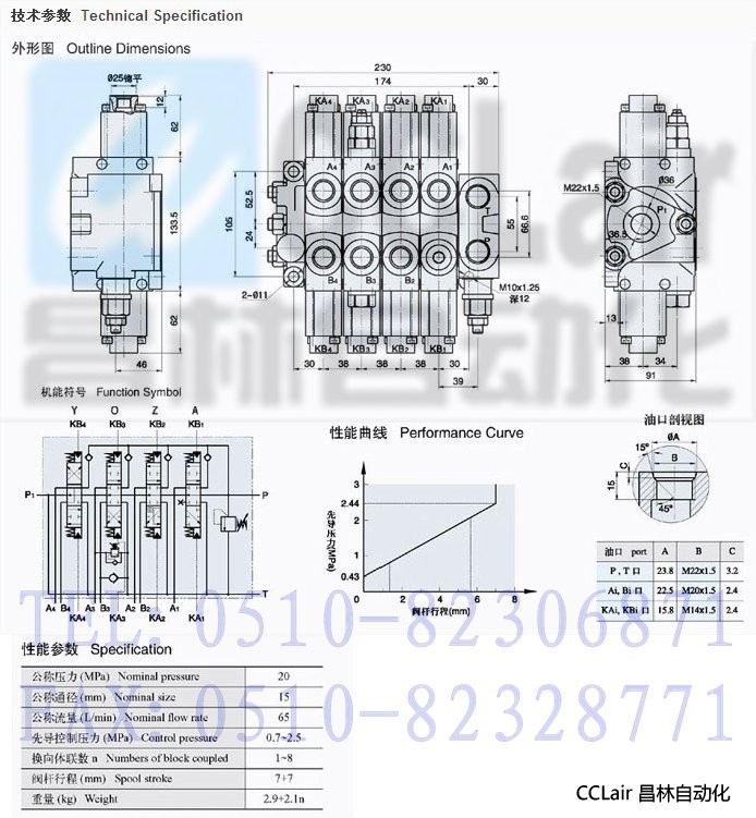 XYDL*-F15L 系列多路閥是在DL*-F15L 系列多路閥的基礎上開發(fā)的,先導閥控制液動換向。XYDL1-F15L 系列多路閥的回油體帶