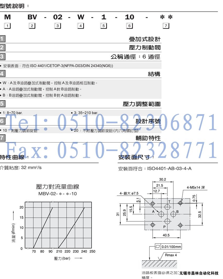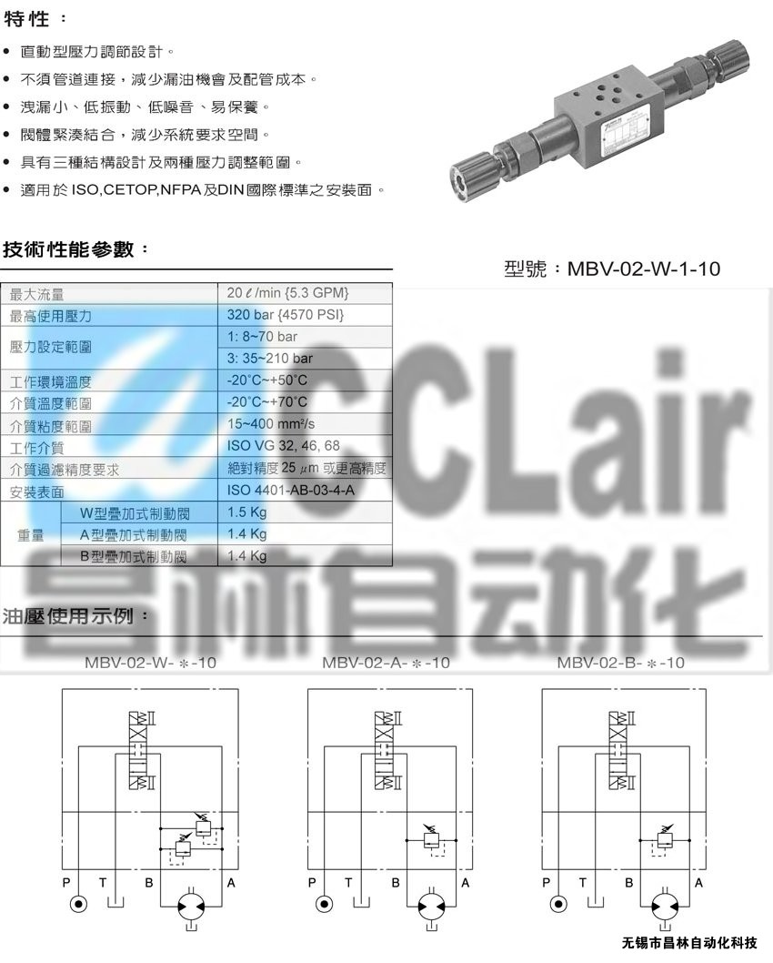 MBV-02-W,MBV-02-A,MBV-02-B,疊加式制動閥,