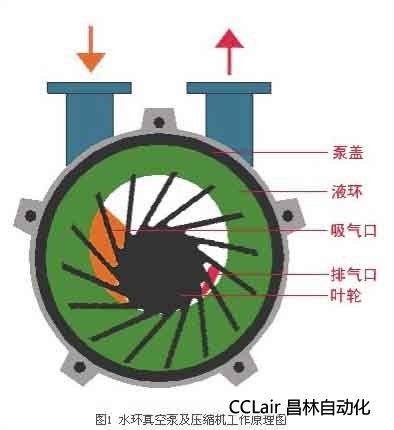 SKA型水環(huán)式真空泵如圖(1)所示葉輪3偏心地安裝在泵體之內(nèi),起動時向泵內(nèi)注入一定高度的水,因此當葉輪3旋轉(zhuǎn)時,水受離心力的作用而在泵體內(nèi)壁形成一旋轉(zhuǎn)水環(huán)1,水環(huán)下部內(nèi)表面與輪轂相切,沿箭頭方向旋轉(zhuǎn),在前半轉(zhuǎn)過程中,SKA型水環(huán)式真空泵水環(huán)內(nèi)表面逐漸與輪轂脫離,因此在葉輪葉片間與水環(huán)形成封閉空間,隨著葉輪的旋轉(zhuǎn),該空間逐漸擴大,空間氣體壓力降低,氣體自圓盤吸氣口被吸入;在后半轉(zhuǎn)過程中,水環(huán)內(nèi)表面逐漸與輪轂靠近,葉片間的空間逐漸縮小,空間氣體壓力升高,高于排氣口壓力時,葉片間的氣體自圓盤排氣口被排出。如此葉輪每轉(zhuǎn)動一周,葉片間的空間吸排氣一次,許多空間不停地工作,SKA型水環(huán)式真空泵就連續(xù)不斷地抽吸或壓送氣體。