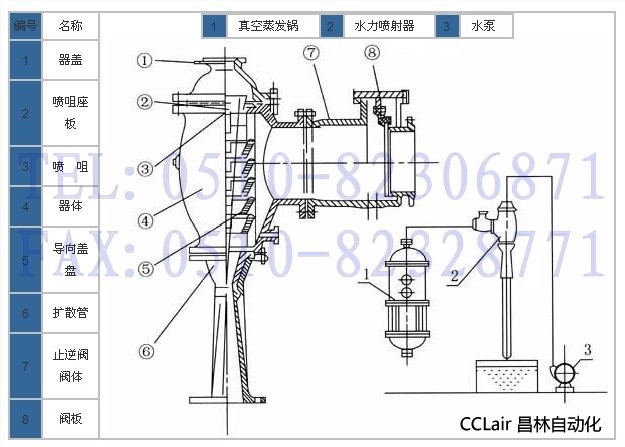 W型水力噴射器整個裝置結(jié)構(gòu)緊湊精密,強(qiáng)度變較高,用于真空蒸發(fā)系統(tǒng)中,由于能把冷凝器的冷凝作用與真空泵的抽氣作用合并在一個設(shè)備中同時完成,大大地簡化了工藝流程, 比之原來用真空泵與舊式冷凝器的裝置,可以節(jié)省去真空泵、冷凝器,分水器等設(shè)備,并且還有下列優(yōu)點: