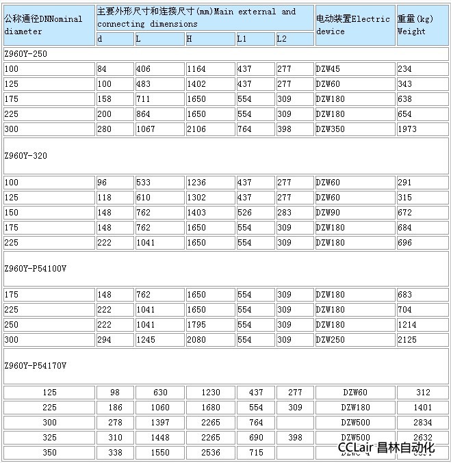三、Z960Y高溫高壓電站閘閥主要外形尺寸: