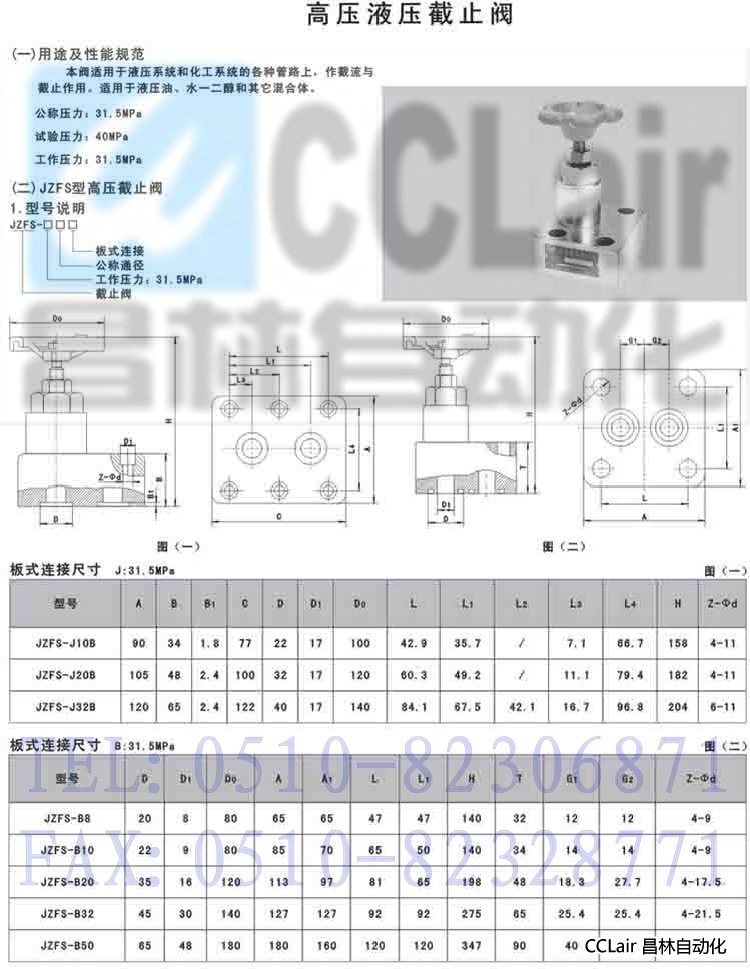 JZFS-J10B,JZFS-J20B,JZFS-J32B,JZFS-B8,JZFS-B8,JZFS-B10,JZFS-B20,JZFS-B32,JZFS-B50,高壓液壓截止閥