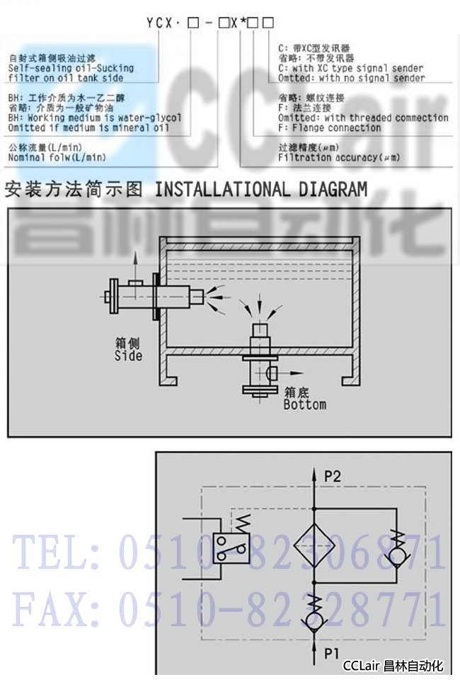 YCX-25X*LC,YCX-40X*LC,YCX-63X*LC,YCX-100X*LC,YCX-16X*LC,YCX-250X*FC,自封式箱側(cè)吸油過(guò)濾器