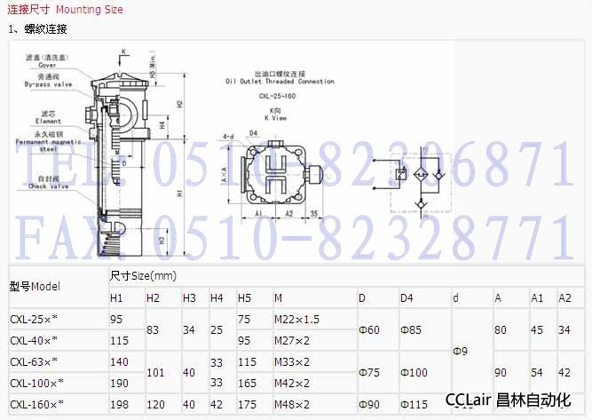 CXL-25*80,CXL-40*80,CXL-63*80,CXL-100*80,CXL-160*80,CXL-250*80,CXL-400*80,磁性吸油過濾器